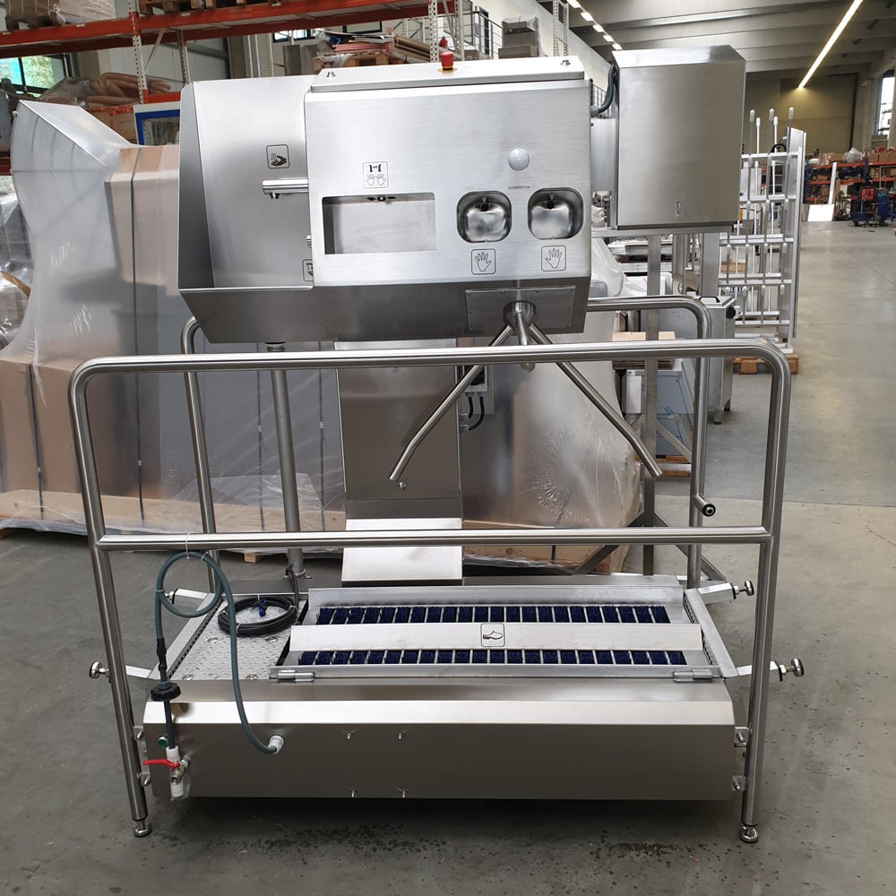 Whether with or without hand washing, with automatic hand drying or paper towel dispenser, for work shoes or boots, for access to or exit from the production area, single or double lane guided - we are certain to have a solution that precisely meets your specific requirements.